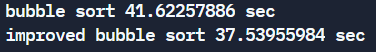 개선된 거품정렬은 최선 O(n) , 최악 O(n^2), 평균은 O(nlogn ~ n^2)일 것같다.(절반만 정렬되어 있을 경우) n마다 logn개만큼 반복