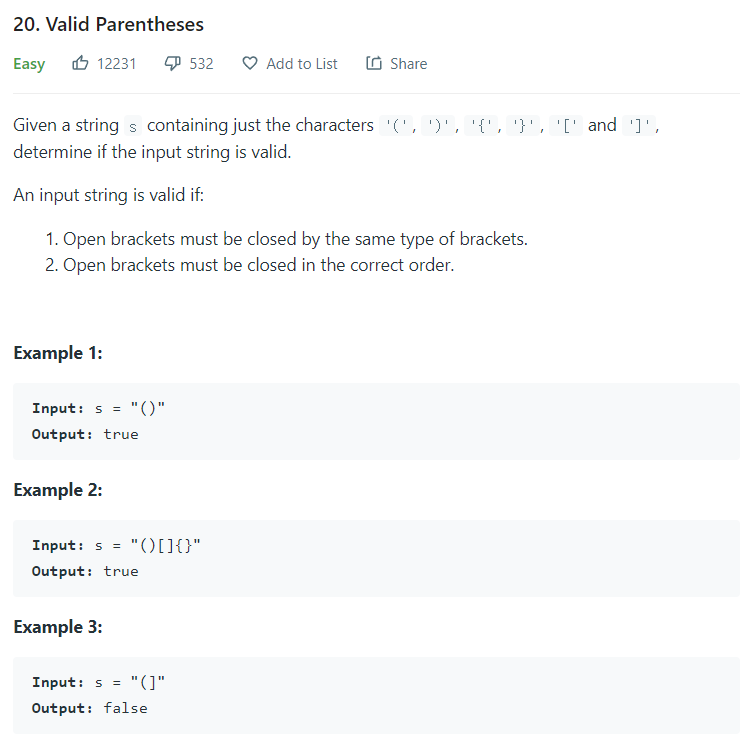 괄호가 정상적인지 찾는 스택의 대표 문제