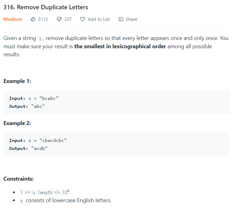 Remove Duplicate Letters - LeetCode