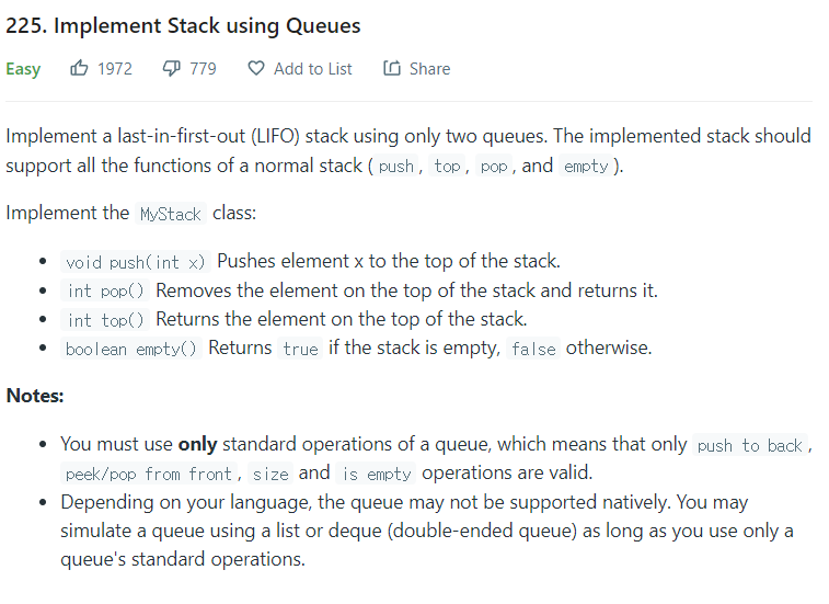 https://leetcode.com/problems/implement-stack-using-queues/