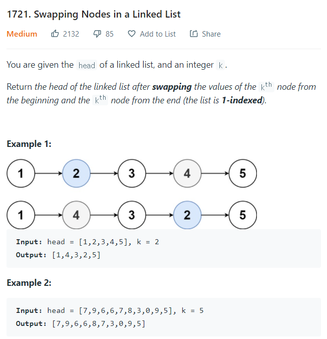 https://leetcode.com/problems/swapping-nodes-in-a-linked-list/