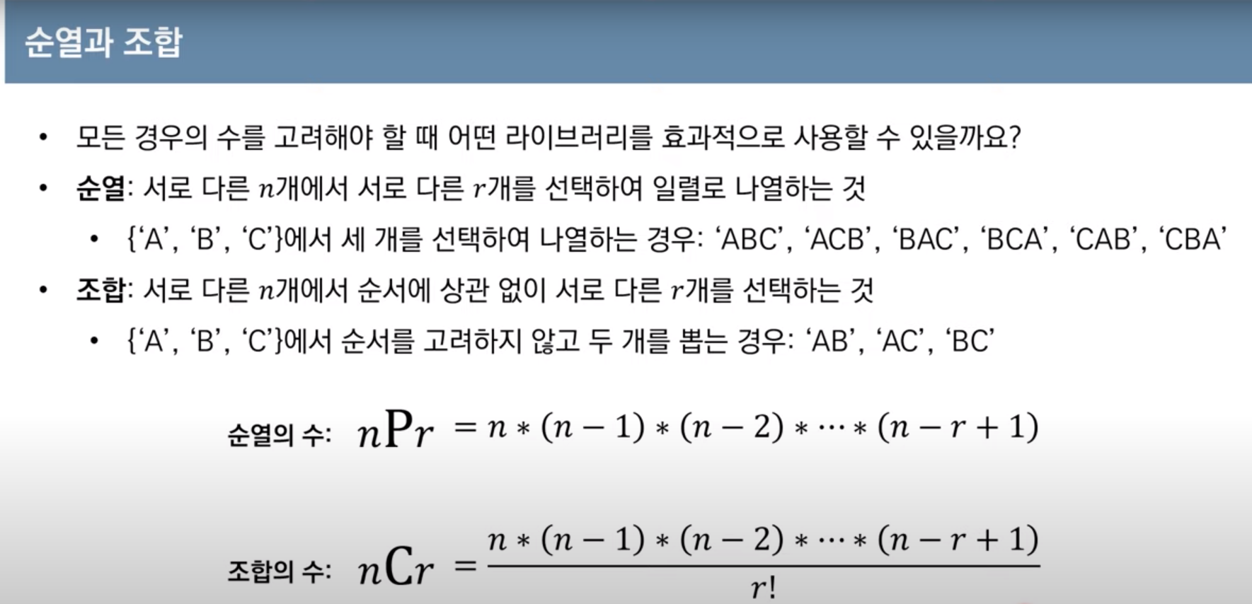 - 중복 X 순서 X